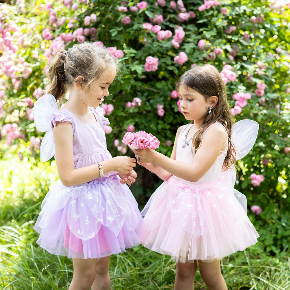 Τα φτερά του σετ είναι στολισμένα με μια κεντρική πεταλούδα και συμπληρώνουν την στολή, δημιουργώντας μια εντυπωσιακή, παιχνιδιάρικη εικόνα. Συνδυάζονται ιδανικά με το ταιριαστό ραβδί για ακόμα περισσότερη διασκέδαση και μαγικές στιγμές.