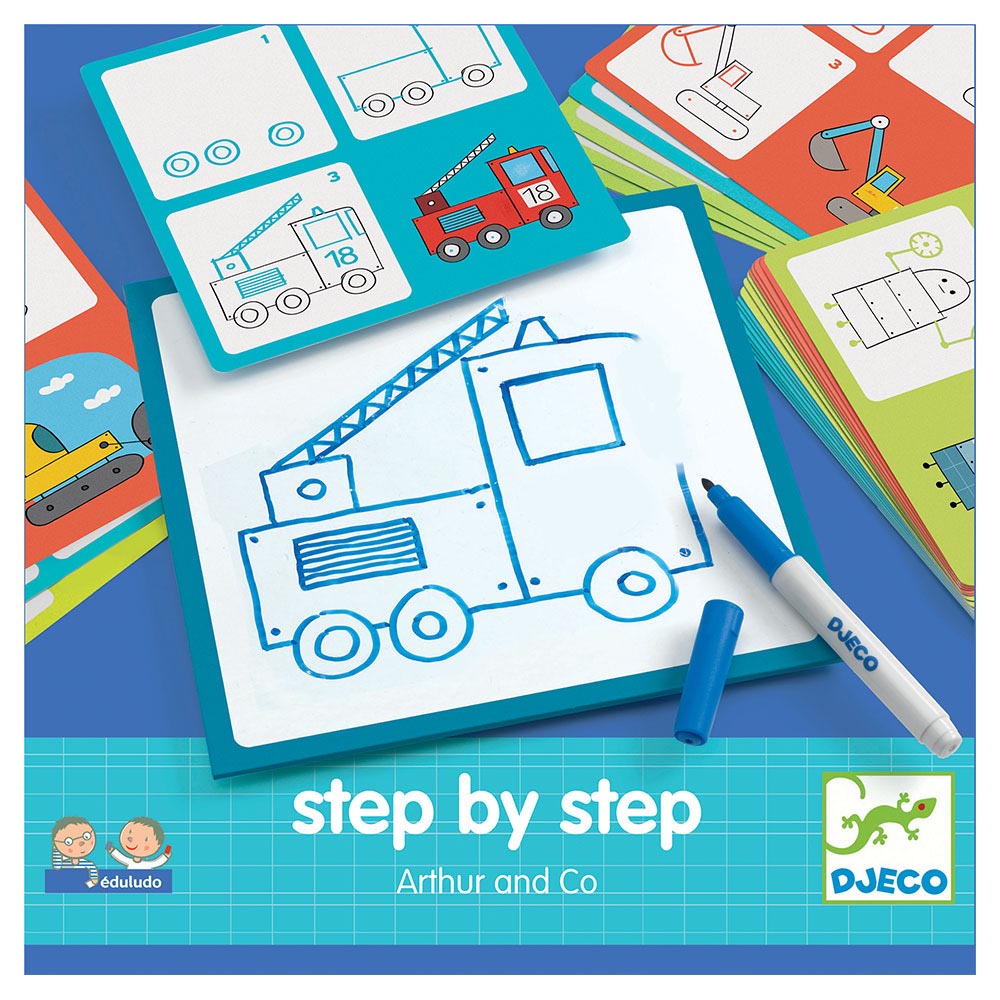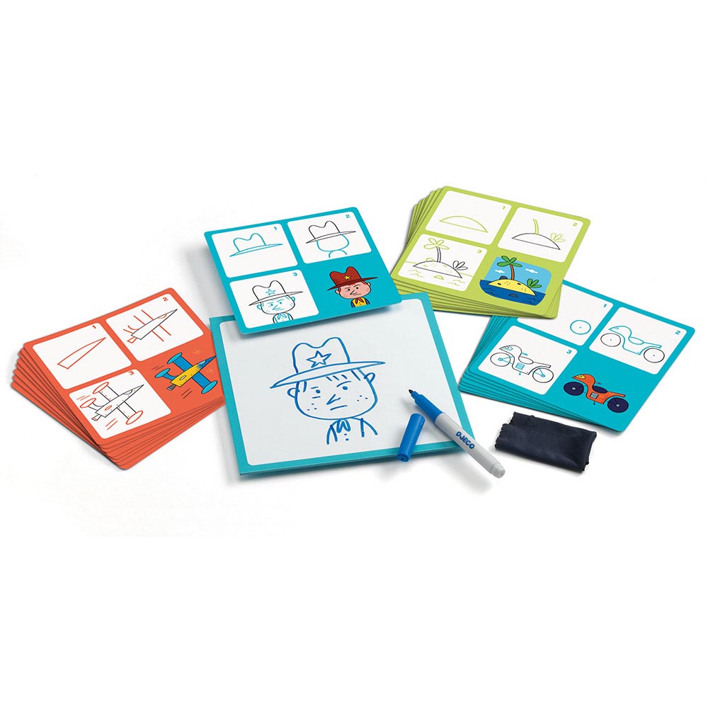 Το σετ ζωγραφικής της εταιρίας Djeco, δείχνει βήμα-βήμα στις μικρές/μικρούς μας ζωγράφους πώς μπορούν σε τρία στάδια να μάθουν να σχεδιάζουν! Το σετ περιλαμβάνει 12 κάρτες διπλής όψης, 1 πίνακα ζωγραφικής, ένα μαρκαδόρο και το ειδικό πανάκι για να σβήνετε τον πίνακα. Κατάλληλο από 4 έως 7 ετών.