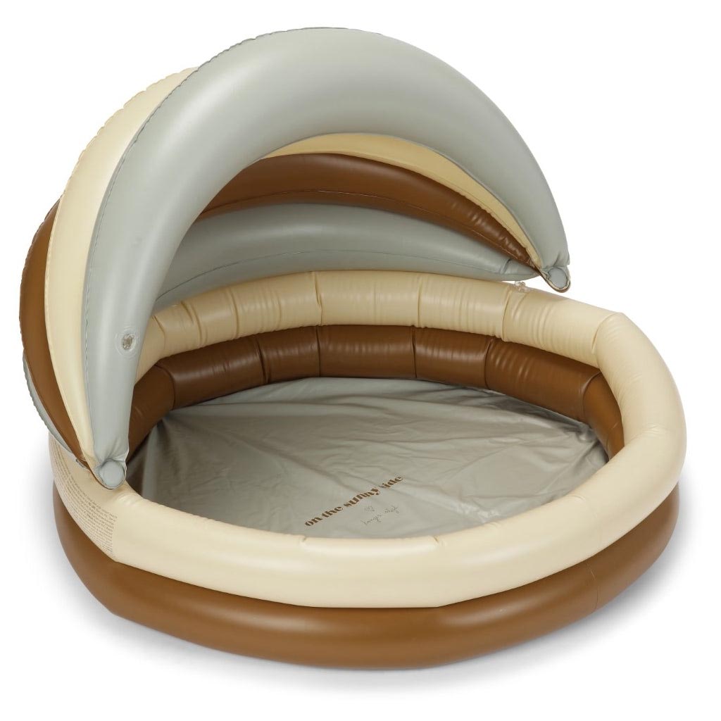Μεγάλη φουσκωτή πισίνα με ενσωματωμένη τέντα για να προστατεύει το παιδί από τον ήλιο. Από ανθεκτικό PVC χωρίς φθαλικές ενώσεις
