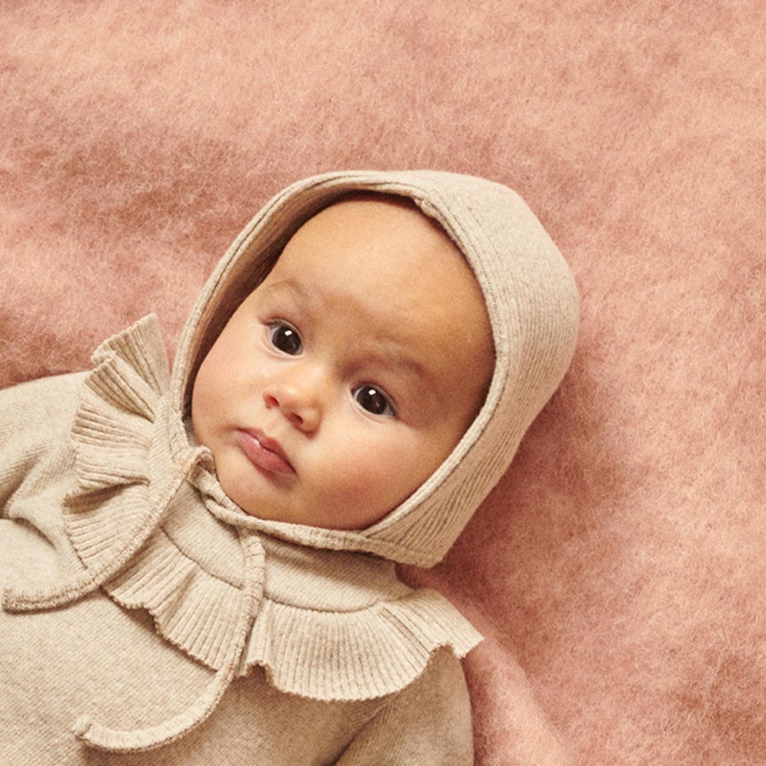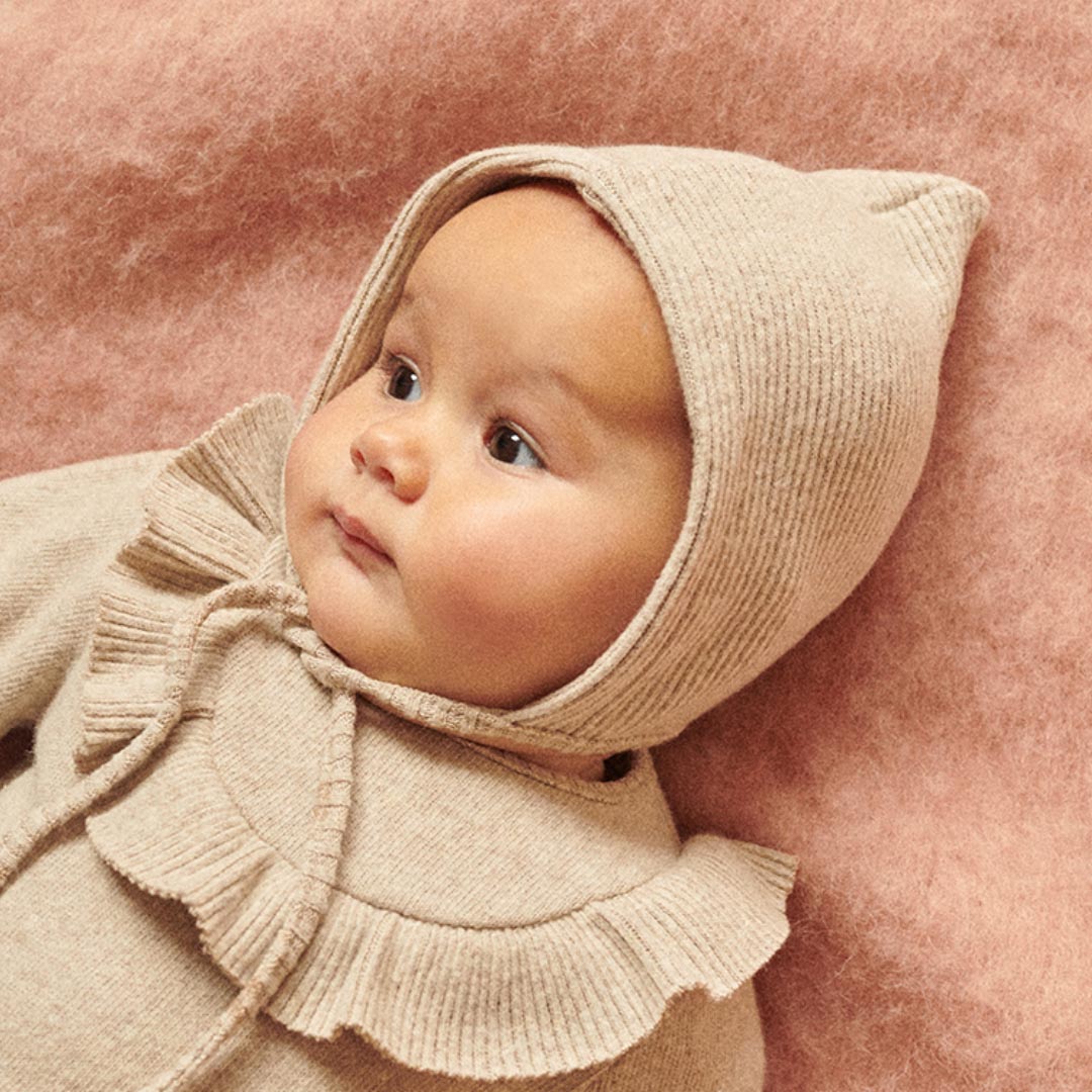 Βαμβακερό σκουφάκι σε ριμπ ύφανση, που δένει στο λαιμό.