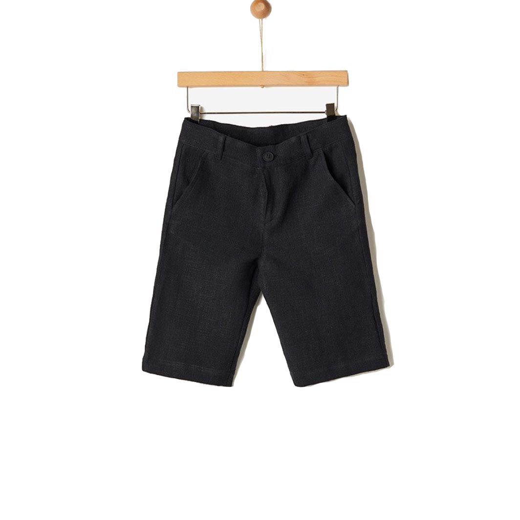 Mαύρη υφαντή βερμούδα που συνδυάζεται υπέροχα με το λινό πουκάμισο της Yell-oh.