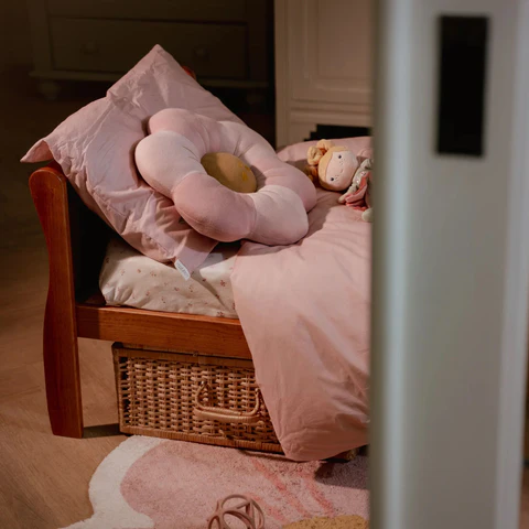Το παιδί αγκαλιάζει το μαξιλάρι και απολαμβάνει την απαλή υφή του. Η σύνθεση από 100% οργανικό βαμβάκι με πιστοποίηση OEKO-TEX® Standard 100 συνδυάζει φιλικότητα προς το περιβάλλον και ανθεκτικότητα. Επιπλέον, πλένεται στους 30 βαθμούς σε απαλό πρόγραμμα, χωρίς σίδερο, στεγνό καθάρισμα ή λευκαντικό, αλλά δεν είναι κατάλληλο για στεγνωτήριο. Έτσι παραμένει πάντα φρέσκο και όμορφο.