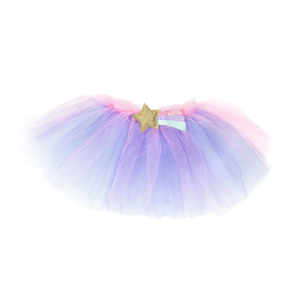 Ροζ – μωβ φούστα tutu από την εταιρεία Great Pretenders για μικρές επίδοξες μπαλαρίνες. Η φούστα διαθέτει αρκετές στρώσεις από μαλακό τούλι και έχει χοντρό λάστιχο στη μέση, έτσι ώστε να προσαρμόζεται με ευκολία. Το απλικέ αστέρι στο μπροστινό κομμάτι της φούστας είναι μια ιδιαίτερη λεπτομέρεια που συνδυάζοντας την με την αντίστοιχη στέκα και το ραβδί θα έχετε ολοκληρωμένο το “Αστεράκι” σας!