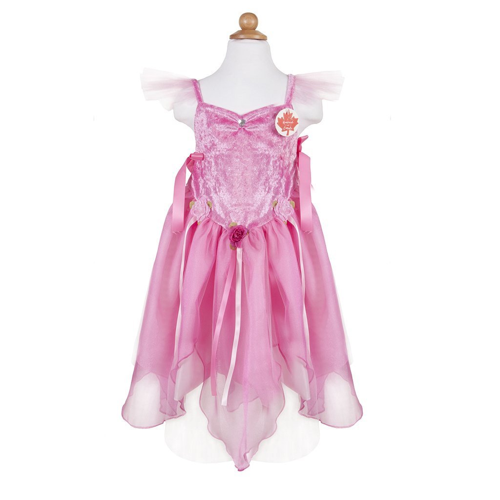 Η νεραΐδα της εταιρείας Great Pretenders κρύβεται ανάμεσα στα δέντρα και παίζει με τα ζώα του δάσους! Χαρίζει δώρα σε όλους και λίγη από την μαγική της χρυσόσκονη μπορεί να σας κάνει να πετάξετε! Η στολή είναι κατασκευασμένη από βελούδινο φουξ ύφασμα στολισμένο με ασημί βούλες χρυσόσκονης και η φούστα από οργάτζα και τούλι. Μπορείτε να προσαρμόσετε το μέγεθος ανάλογα την ηλικία του παιδιού καθώς στο πλάι διαθέτει κορδέλες που δένουν. Το στεφανάκι και τα φτερά δεν περιλαμβάνονται.