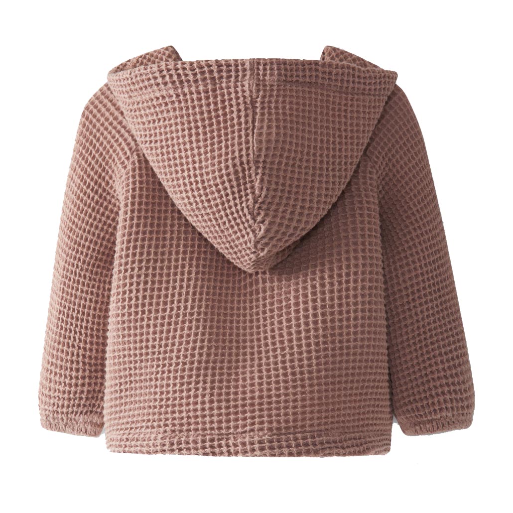 Ζακετάκι με κουκούλα από αφράτο, πικέ-waffle ύφασμα. Ιδανικό πανωφόρι για άνοιξη και καλοκαίρι.