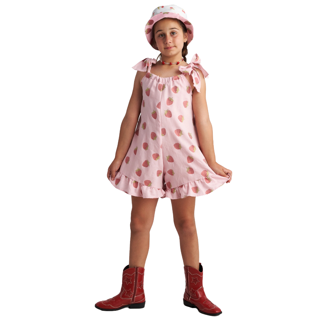 Η ύφανση με μικρές φραουλίτσες δίνει παιχνιδιάρικο χαρακτήρα στο ρούχο. Παράλληλα, οι ρομαντικές λεπτομέρειες δημιουργούν μια γλυκιά καλοκαιρινή εμφάνιση. Το Summer Tart Ruffles Playsuit ταιριάζει ιδανικά σε βόλτες, καλοκαιρινές εξόδους και καθημερινές στιγμές.